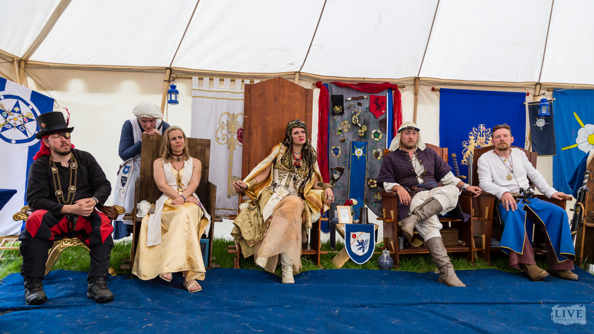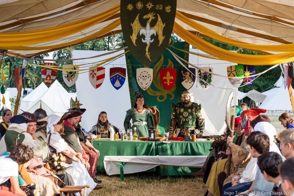Themed Camp: The banner is a union of knights (and their retinue) from all parts of the (LARP-) world, who together with the Atteronians live out the virtues of chivalry aside from high courting politics. At ConQuest, they set up their own camp in the style of King Arthur, including a round table, knightly oaths, exuberant celebrations and a lot of epic battles.